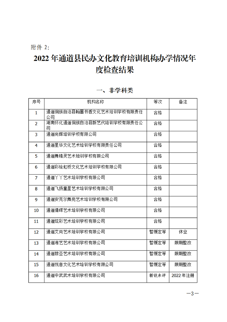 根据市教育局《关于做好2022年怀化市民办学校年度办学情况检查的通知》和省教育厅《关于规范校外培训机构年度办学情况检查的通知》(湘教通〔2023〕43号)要求,我局对已审批设立的19所民办幼儿园、25所民办文化教育培训机构2022年办学情况进行了年度检查。现将评定结果予以公示。