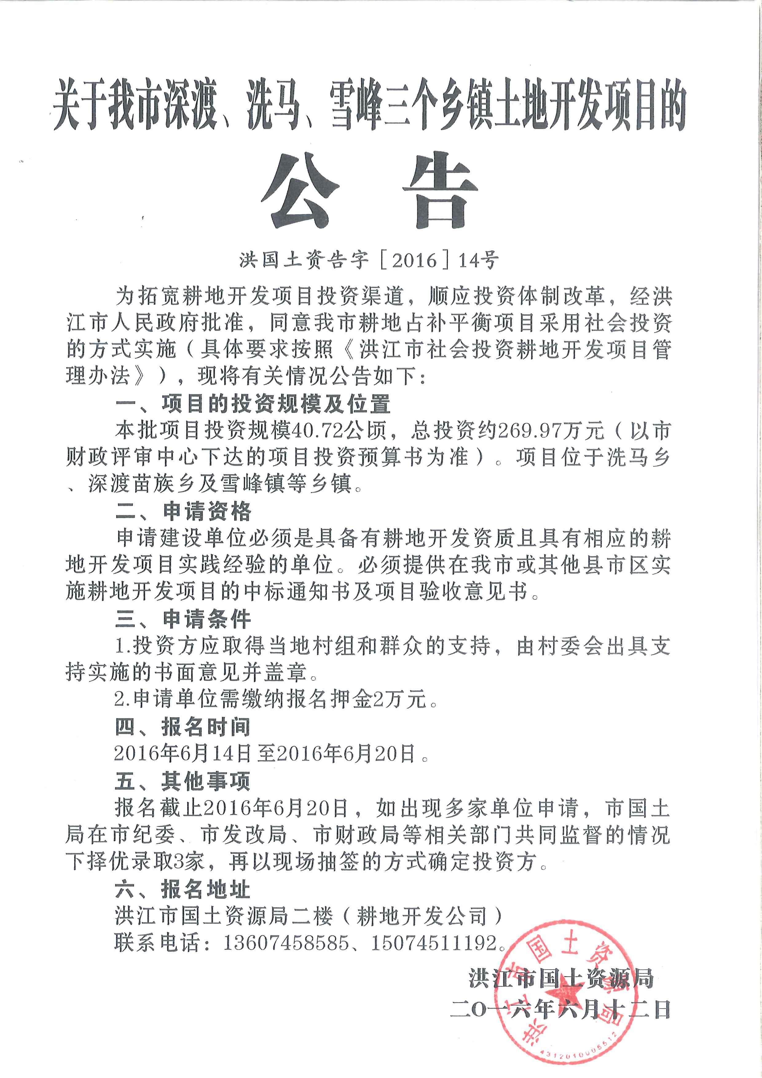 今年以来,我市顺应新时代耕地保护环境,鼓励社会闲散资金参与土地开发,有效解决了耕地占补平衡难题。在去年6月,政府就正式出台了《洪江市社会投资耕地开发项目管理办法》,短短1年时间,我市就引进社会资金2100万元组织实施土地开发,项目验收后预计新增耕地210公顷。