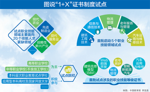 “1+x”:畅通技术技能人才成长通道“1”为学历证书,“x”为若干职业技能等级证书。教育部职业教育与成人教育司负责人介绍,把学历证书与职业技能等级证书结合起来,探索实施“1+x”证书制度,是《国家职业教育改革实施方案》的重要改革部署,也是重大创新。“1+x”证书制度体现了职业教育作为一种类型教育的重...