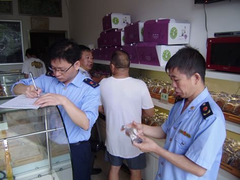 根据市政府食安委和怀化工商局部署的食品“四查”工作要求,9月3日至5日,市工商局组织执法人员对托口镇新集镇的食品小作坊-蛋糕房开展了专项检查。该专项检查重点查看食品经营者的证照、食品的外包装和标签,督促落实进货查验、环境设施及卫生状况等方面。
